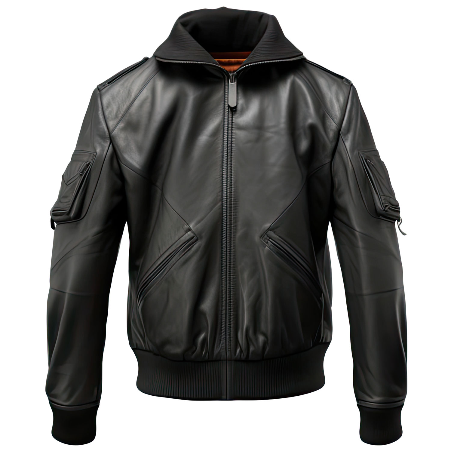 Introducing The Havock Men’s Black Genuine Sheepskin Bomber Pilot Rib Knitted Leather Jacket. This jacket, expertly Made from premium genuine sheepskin leather, ensures both durability and a soft, luxurious feel. The classic shirt collar adds an element of sophistication, complementing the bomber pilot design. Leather motorcycle jacket men featuring a reliable YKK zipper at the front, the jacket offers both security and ease of use. It’s designed with practical slanted pockets on the waist and additional utility pockets on the sleeves, providing ample storage space for essentials. The rib knitted cuffs and bottom hem ensure a comfortable, snug fit, enhancing the overall style and functionality of the leather moto jacket men. Perfect for those seeking a blend of classic aviation style and modern comfort.