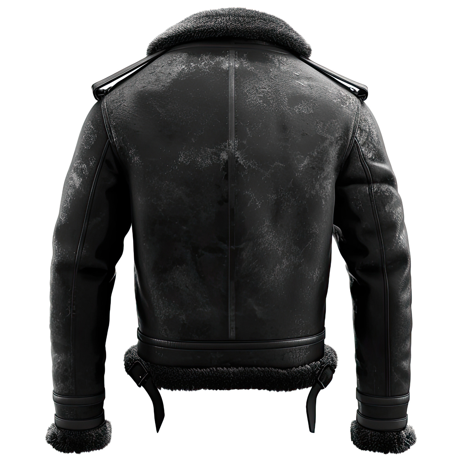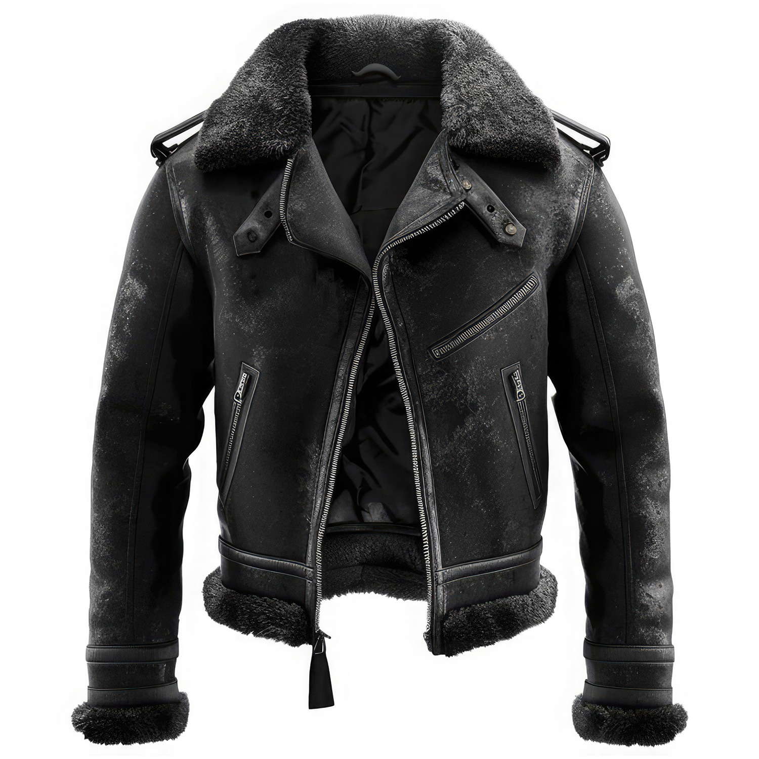Men’s Distressed Black Genuine Suede B3 Sherpa Shearling Faux Fur Collar Autumn Vintage Zip-up Aviator Flight Leather Jacket