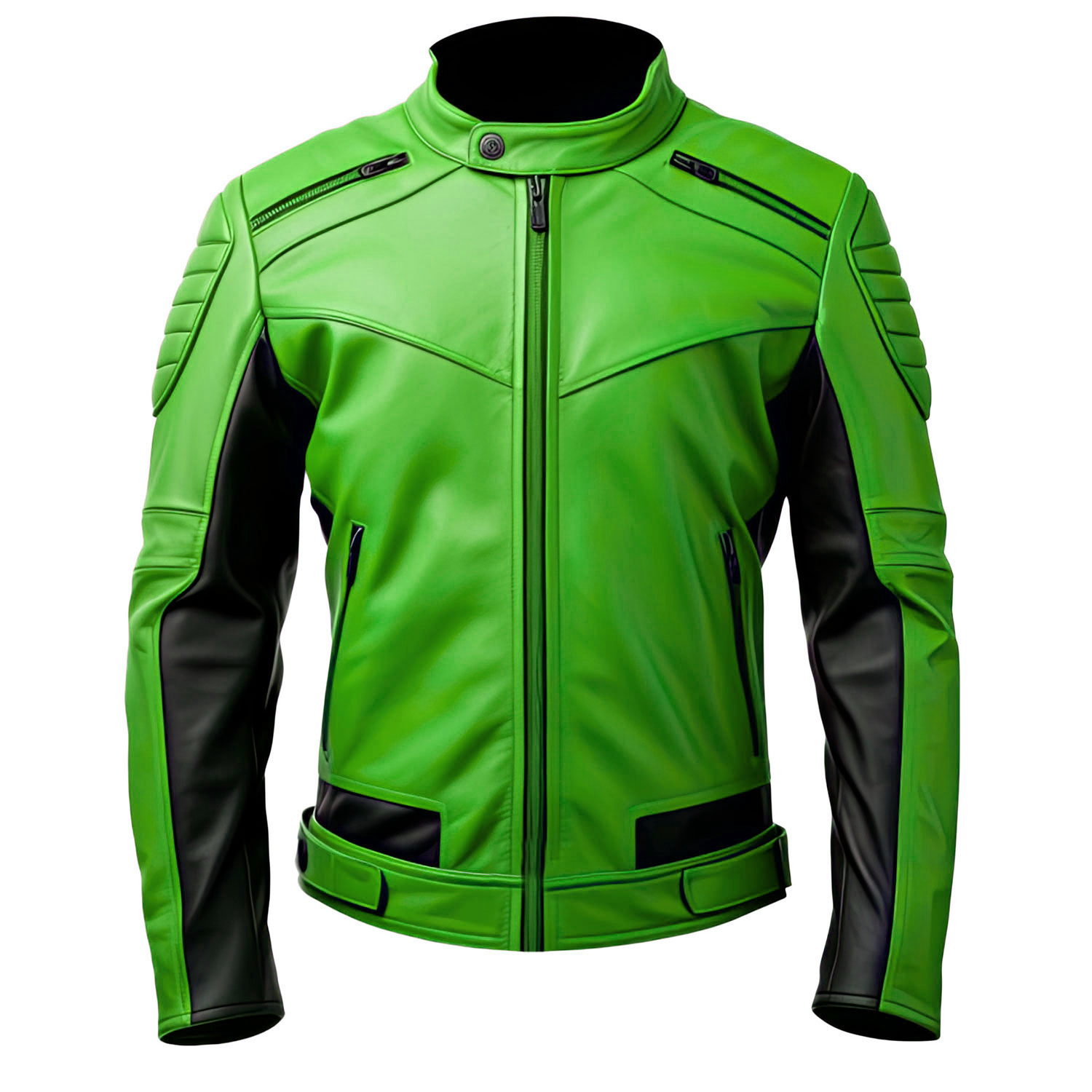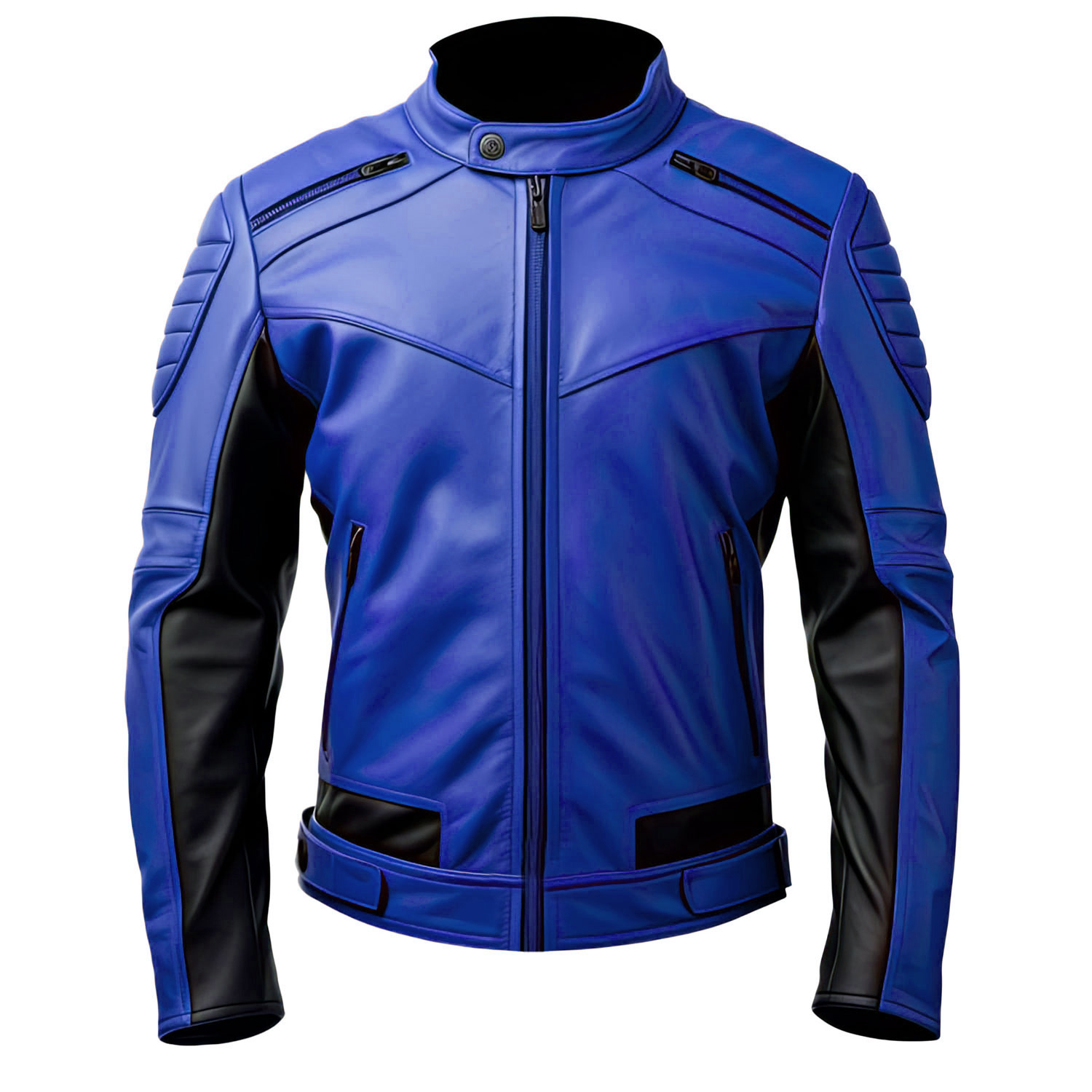 Havock Men’s Genuine Leather Jacket is a sleek embodiment of racing style and biker fashion. Mens leather jacket black made from high-quality genuine leather, this slim-fit jacket offers a smooth, luxurious feel. Featuring a stand collar with a snap button closure, it exudes a sharp, refined look. The front YKK zipper closure ensures a secure fit, ideal for high-speed adventures or casual outings. Zipper pockets provide practical storage, while the hem adds a tailored finish. Full sleeves with stylish shoulder detailing enhance the jacket’s dynamic design. In a bold color scheme, this leather jacket is perfect for those who seek a combination of class and comfort.