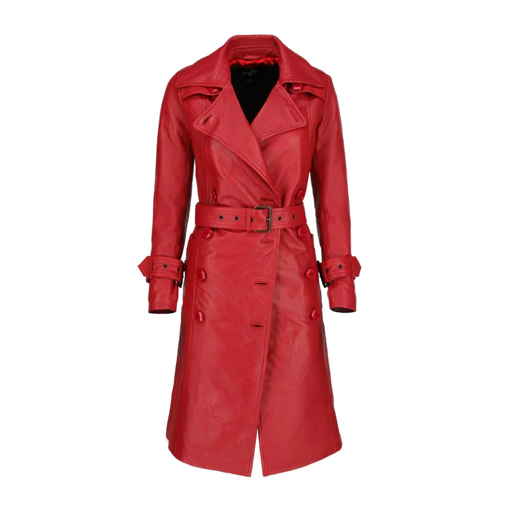 A winter coat with a hint of elegance, this double breasted leather trench coat for women with adjustable belt is made of 100% genuine leather for ultimate durability and protection. This chic, classic style ensures that you’ll always stay in fashion.